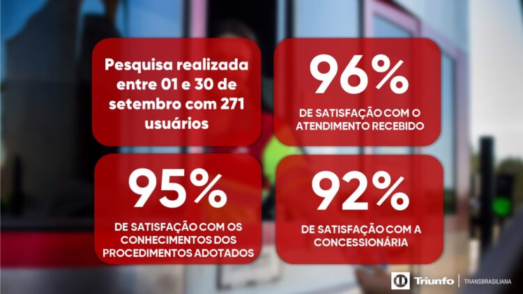 Em setembro, a pesquisa de satisfação contou com a participação de 271 usuários que avaliaram em 96% de satisfação com o atendimento recebido pelas equipes da Concessionária.