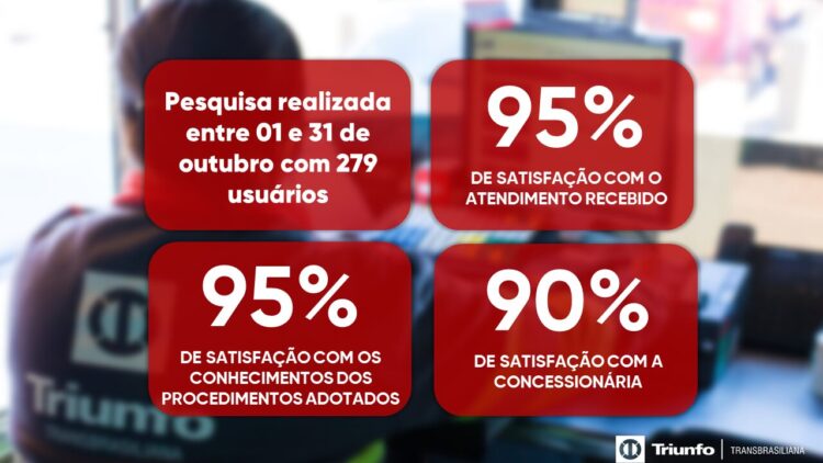 Em outubro, a pesquisa de satisfação contou com a participação de 279 usuários que avaliaram em 95% de satisfação com o atendimento recebido pelas equipes da Concessionária.