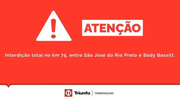 A Triunfo Transbrasiliana informa que nesta quinta-feira (21) os motoristas que trafegarem na altura do km 75 da BR-153/SP, entre São José do Rio Preto e Bady Bassitt, devem redobrar a atenção.
