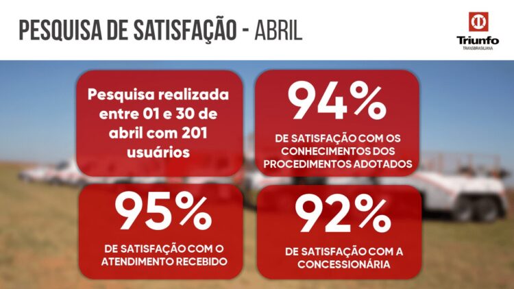 Em abril, 201 usuários avaliaram em 95% de satisfação com o atendimento recebido pelas equipes da Concessionária.