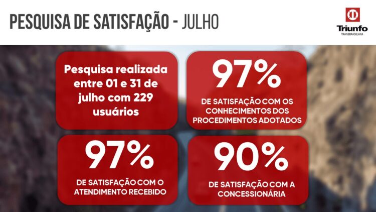 Em julho, 229 usuários avaliaram em 97% de satisfação com o atendimento recebido pelas equipes da Concessionária.