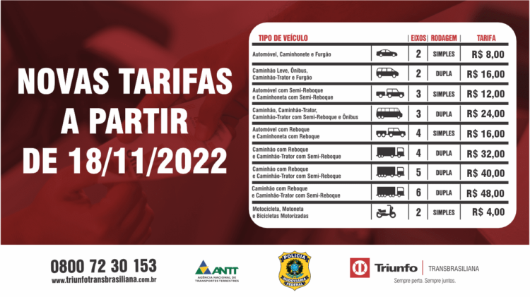 Tarifa básica passará de R$ 7,70 para R$ 8,00, válido para carros, ônibus e caminhões, a partir da zero hora, desta sexta-feira (18).