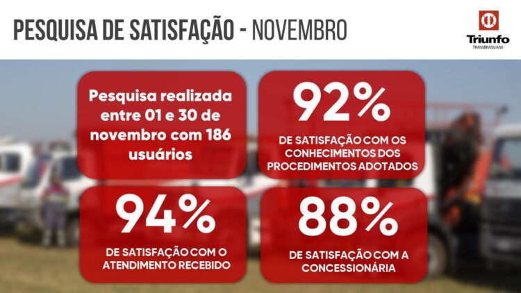 Em novembro, 186 usuários avaliaram em 94% de satisfação com o atendimento recebido pelas equipes da Concessionária.