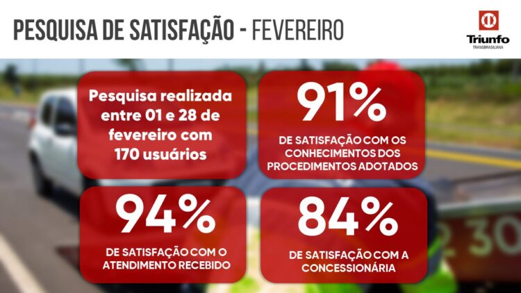 Em fevereiro, 170 usuários avaliaram em 94% de satisfação com o atendimento recebido pelas equipes da Concessionária.