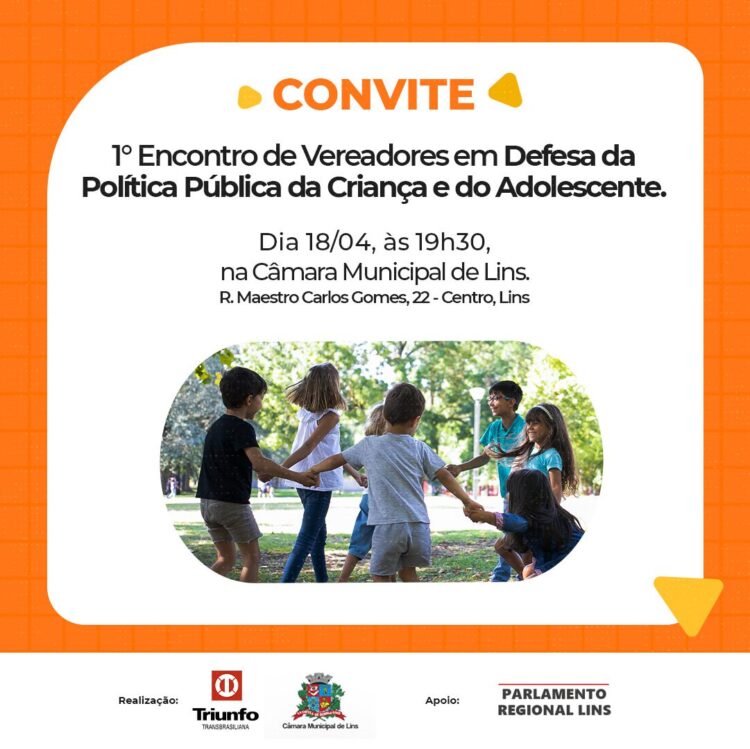 1º Encontro de Vereadores em Defesa da Política Pública da Criança e do Adolescente será realizado nesta terça-feira (18), às 19h30, na Câmara Municipal de Lins.