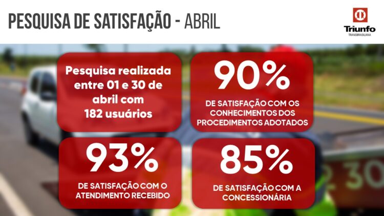 Em abril, 182 usuários avaliaram em 85% de satisfação geral com a Concessionária.