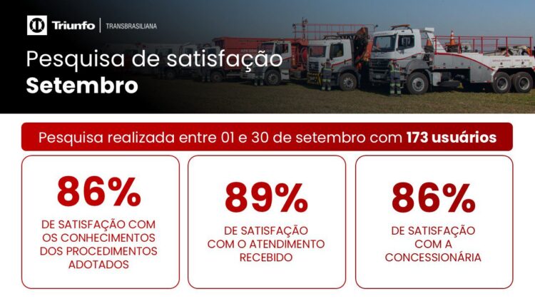 Em setembro, 173 usuários avaliaram em 86% de satisfação geral com a Concessionária.