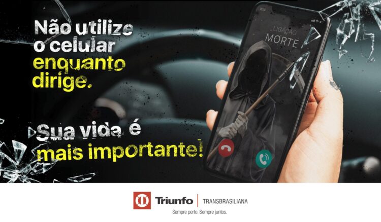 Campanha “Não utilize o seu celular enquanto dirige. Sua vida é mais importante!” busca conscientizar os motoristas que usar o celular ao volante pode resultar em acidentes.