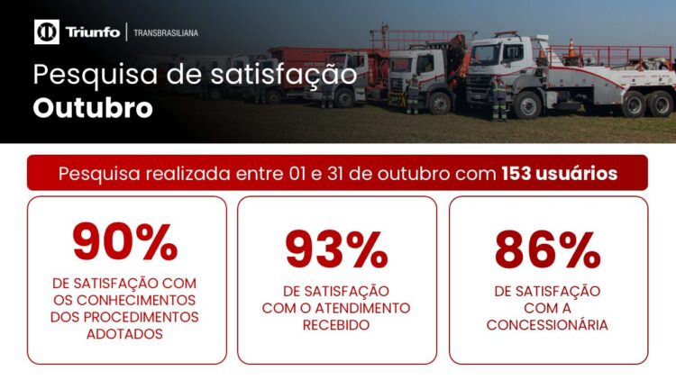 Em outubro, 153 usuários avaliaram em 86% de satisfação geral com a Concessionária.