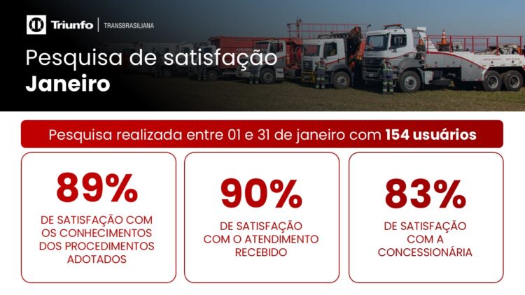 Em janeiro, 154 usuários avaliaram em 83% de satisfação geral com a Concessionária.