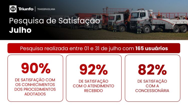 Em julho, 165 usuários avaliaram em 82% de satisfação geral com a Concessionária.