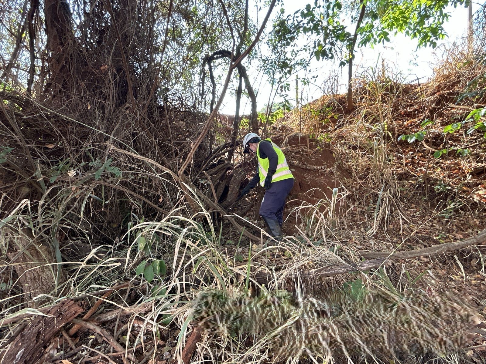 Antes da supressão vegetal (derrubada de árvores), os profissionais realizam o afugentamento da fauna, que estimula de forma controlada o deslocamento dos animais para áreas seguras, fora da zona de risco.