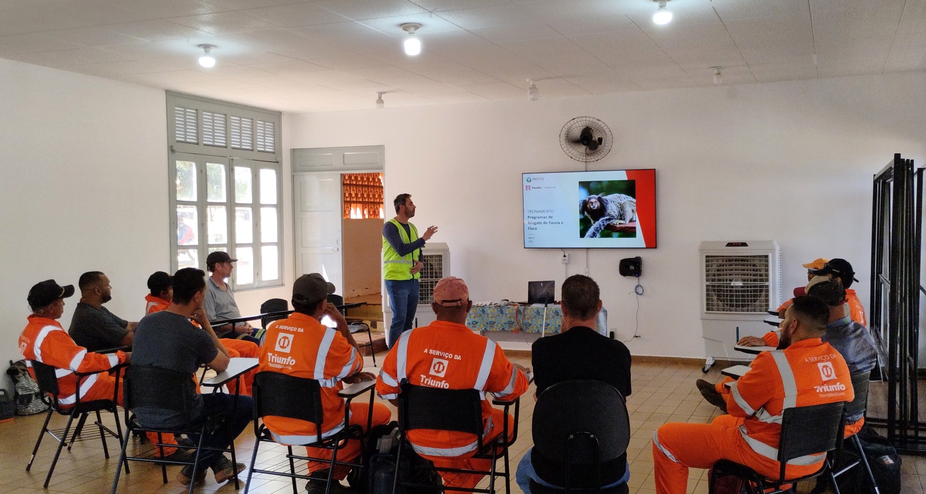Durante a capacitação, foram apresentadas orientações fundamentais sobre como proceder antes e durante as atividades, incluindo o uso correto dos equipamentos de segurança e o acionamento da equipe de resgate em caso de encontro com animais silvestres.