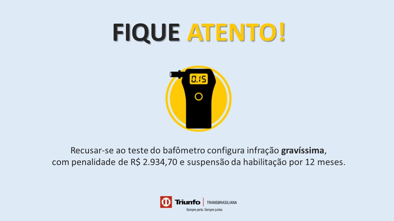 Já os condutores que dirigirem embriagados ou se recusarem a fazer o teste do bafômetro pagarão multa de quase R$ 3 mil. Além disso, o condutor nessa situação perde sete pontos na carteira e tem a habilitação suspensa pelo prazo de 12 meses.