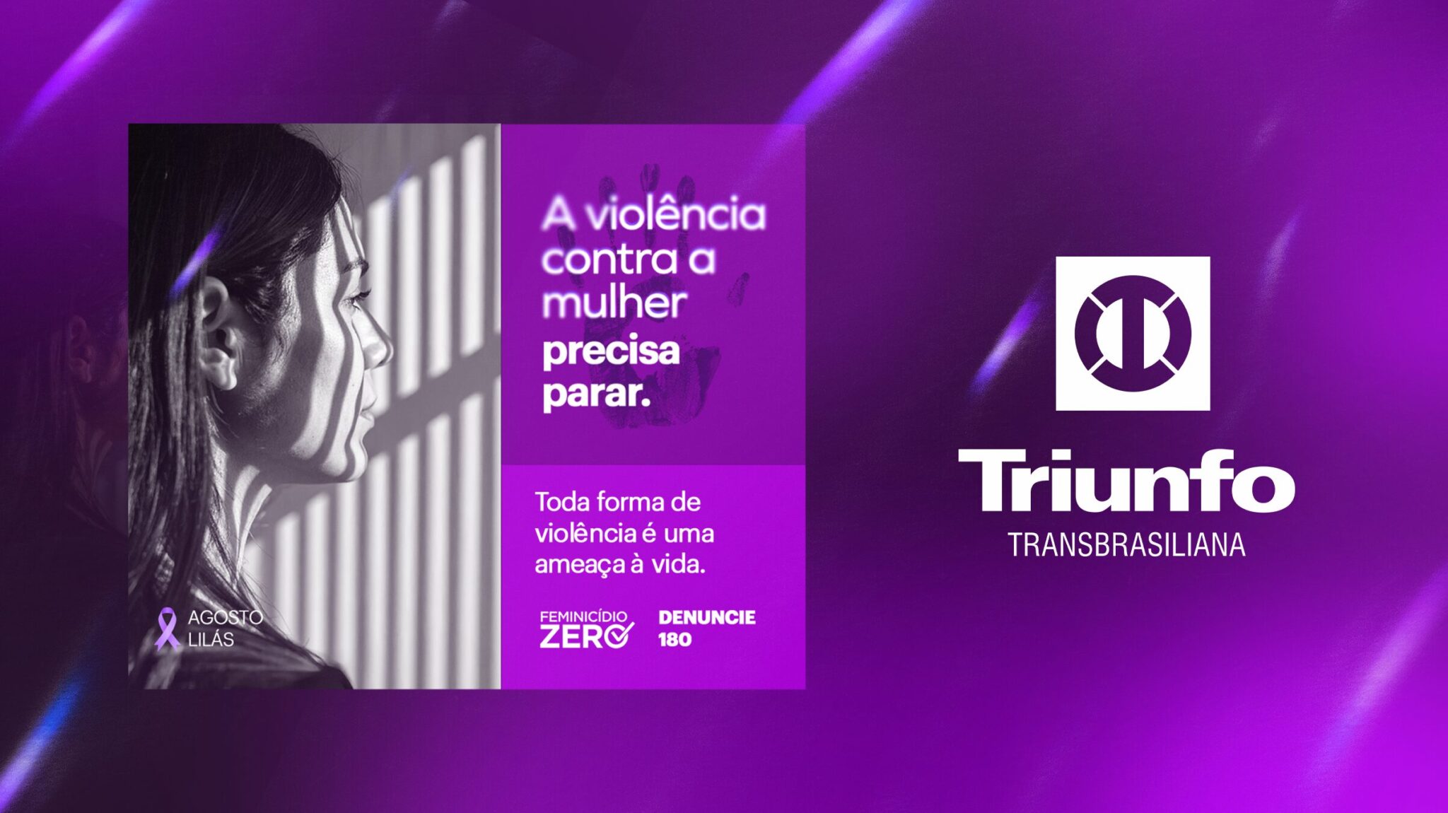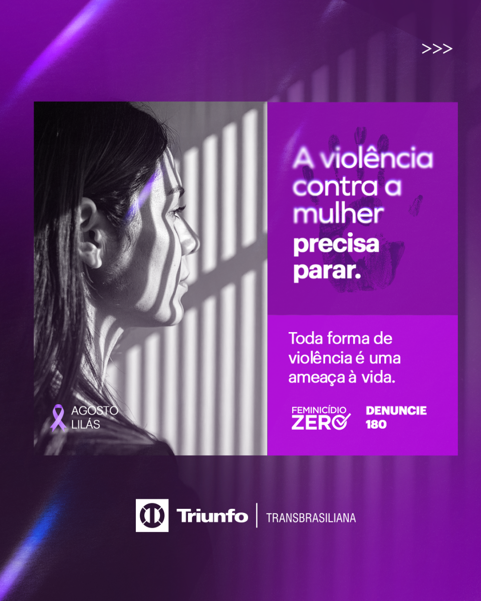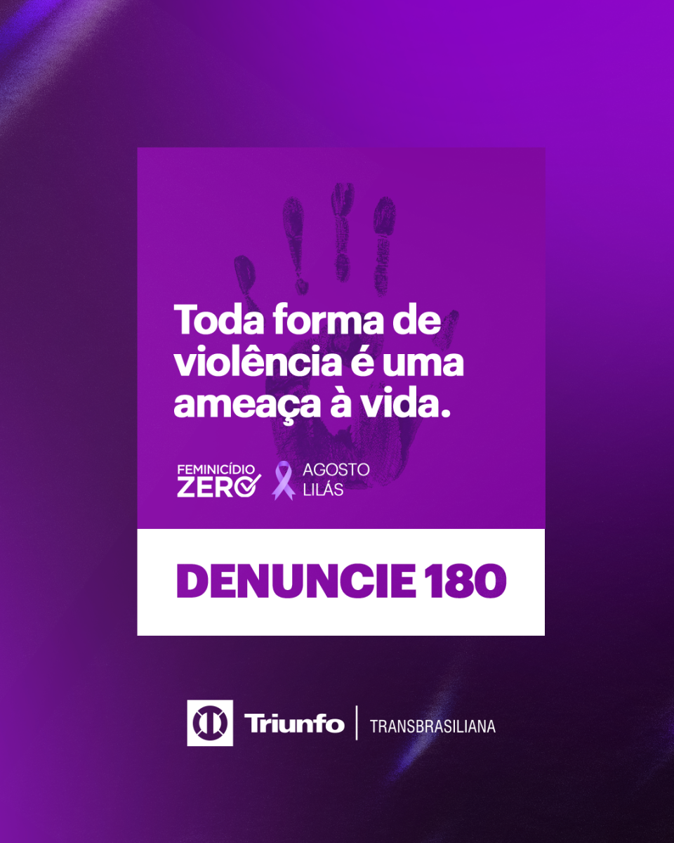 Diante deste cenário de insegurança, durante todo o mês de agosto, a Triunfo Transbrasiliana, concessionária responsável pela administração de 321,6 quilômetros da BR-153/SP, adere ao Agosto Lilás, campanha nacional de enfrentamento à violência contra a mulher. A campanha visa sensibilizar e informar a população sobre a identificação de situações de violência e os canais disponíveis para denúncias, promovendo uma rede de apoio e proteção para as vítimas.