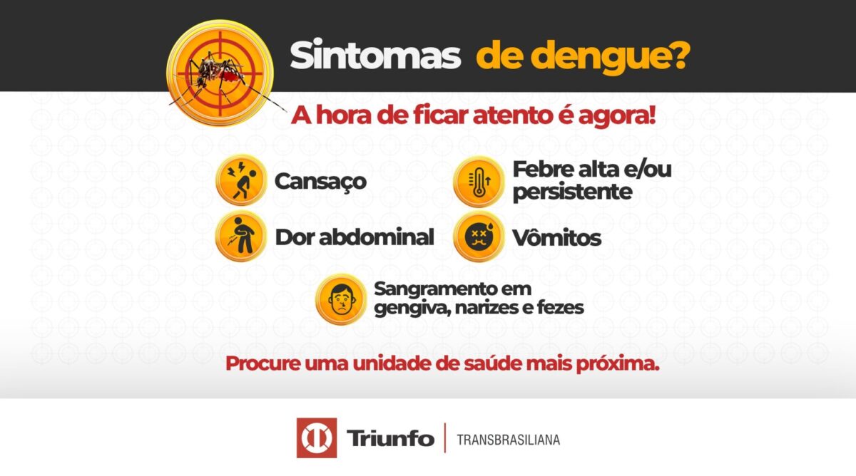 Diante de números tão preocupantes, a Triunfo Transbrasiliana, Concessionária que administra a BR-153/SP, lança neste mês a campanha educativa “Todo dia é dia de combater o mosquito”. A iniciativa visa reforçar com a sociedade em geral e usuários sobre a importância de evitar a água parada e procurar um médico imediatamente ao surgirem os primeiros sintomas da doença, como: vômito, febre alta, dor, cansaço e sangramentos na gengiva, nariz e fezes.